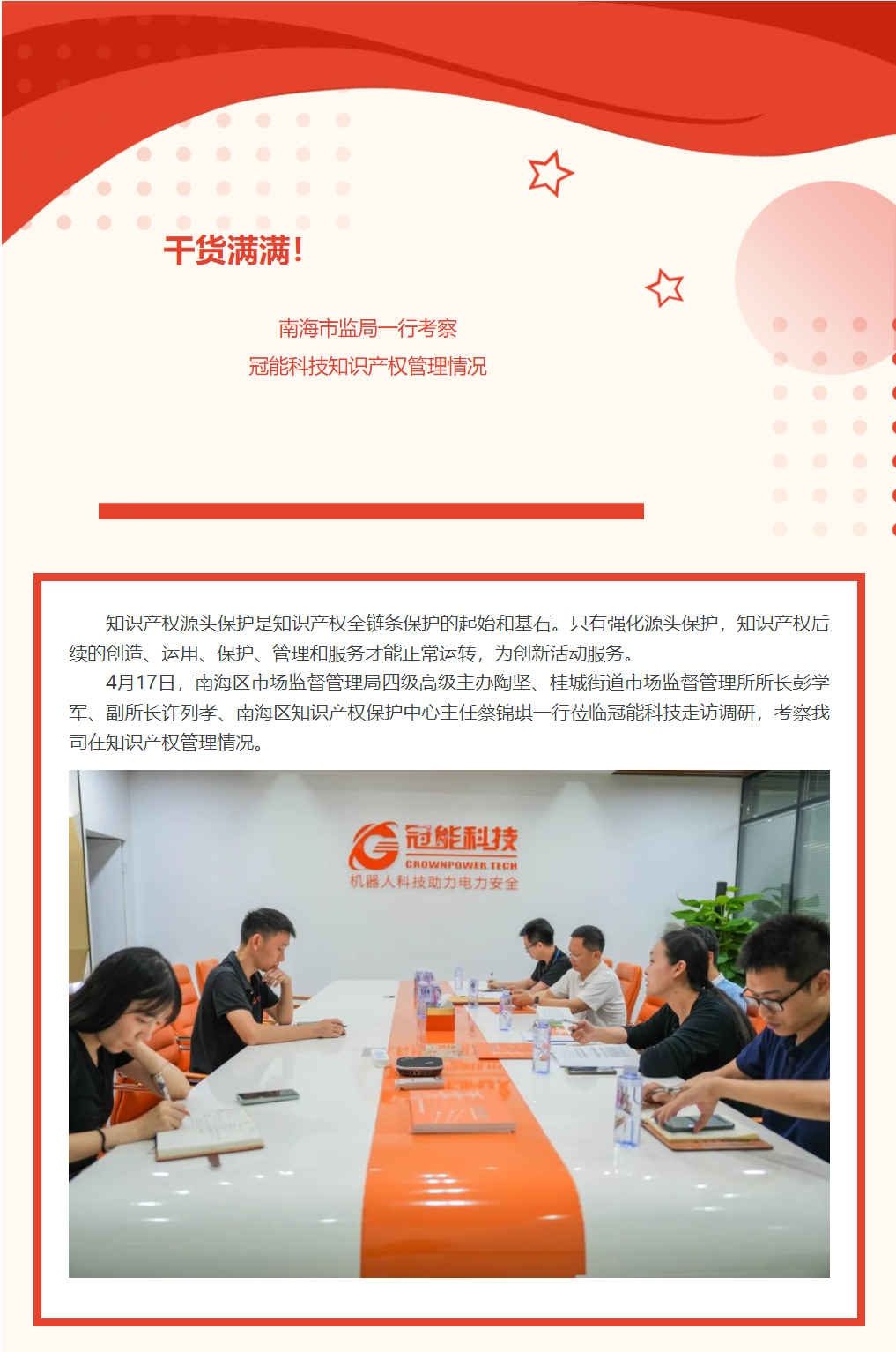 Full of valuable goods! Nanhai Municipal Supervision Bureau inspects the intellectual property management of Guanneng Technology